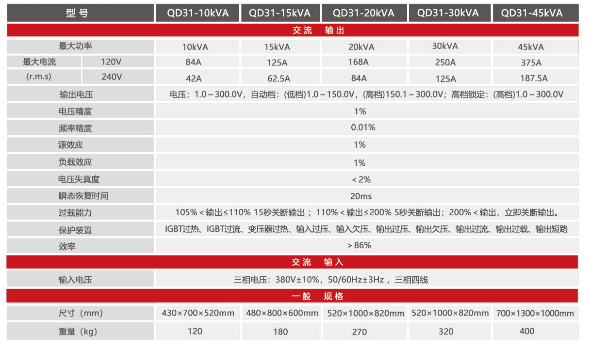 QD31系列单相输出系列交流电源供应器采用数字化控制、瞬时波形控制及高频脉宽调制等技术,具有响应速度快、输出精度高、输出波形纯净、体积重量小、可靠性高等优点。该产品在满足客户常规功能需求的基础上,更能做到“一机多用”,是传统行业需求的完美解决方案及设备更新换代的完美替代方案。